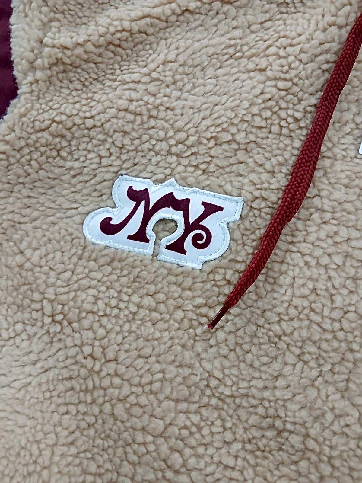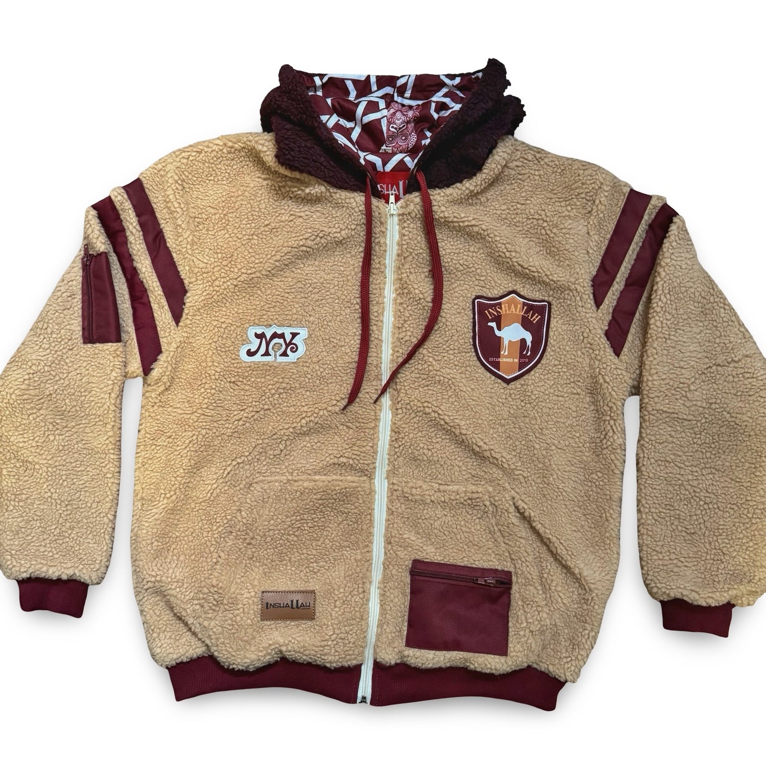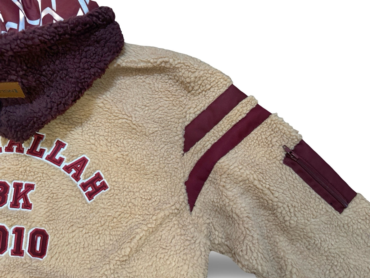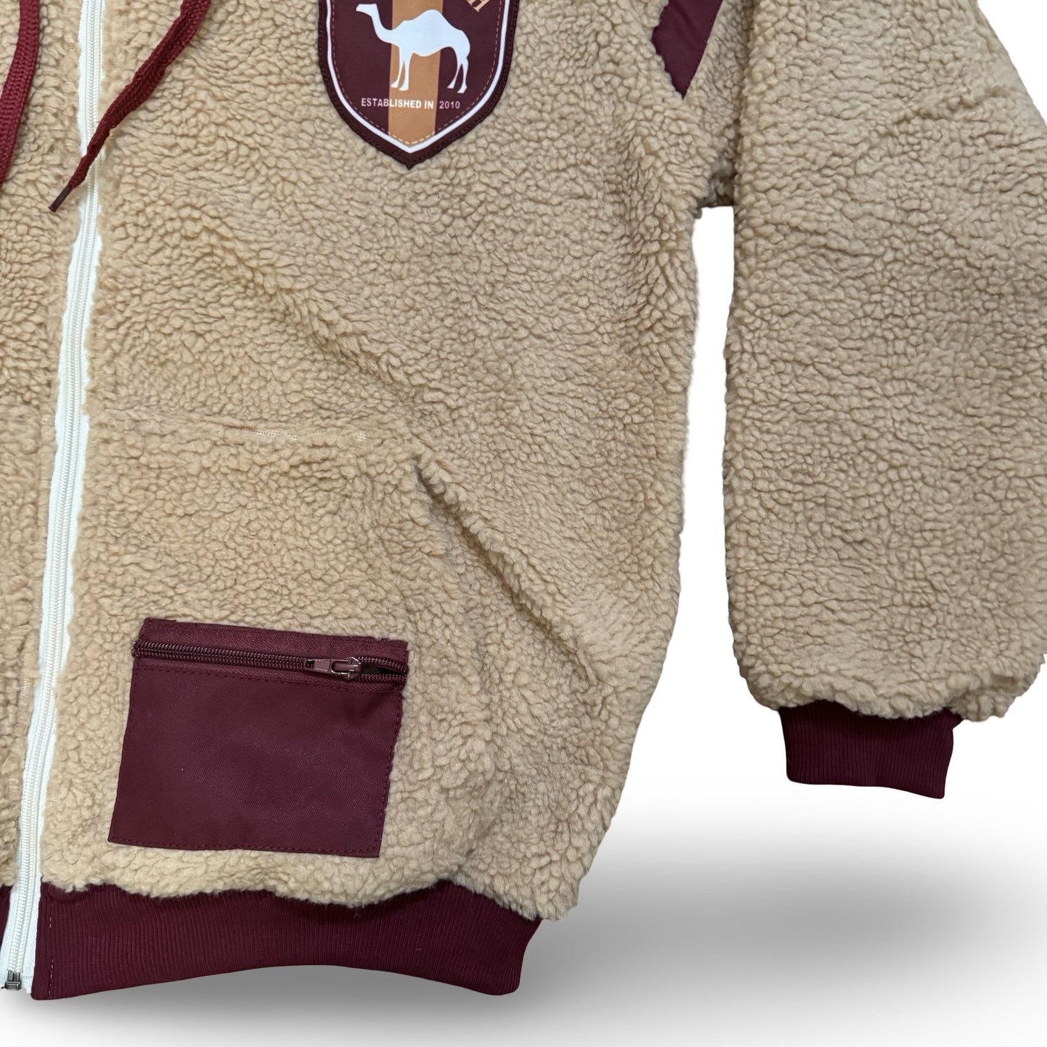 2 tone mid weight Shepra fleece hoodie/jacket with heavy embroidery and appliqué patchwork detailing..
