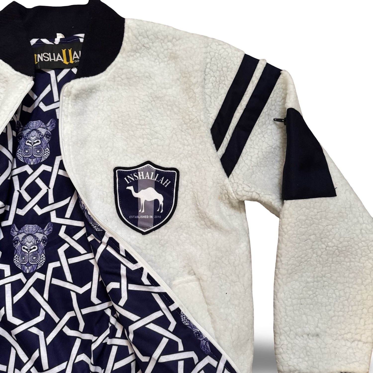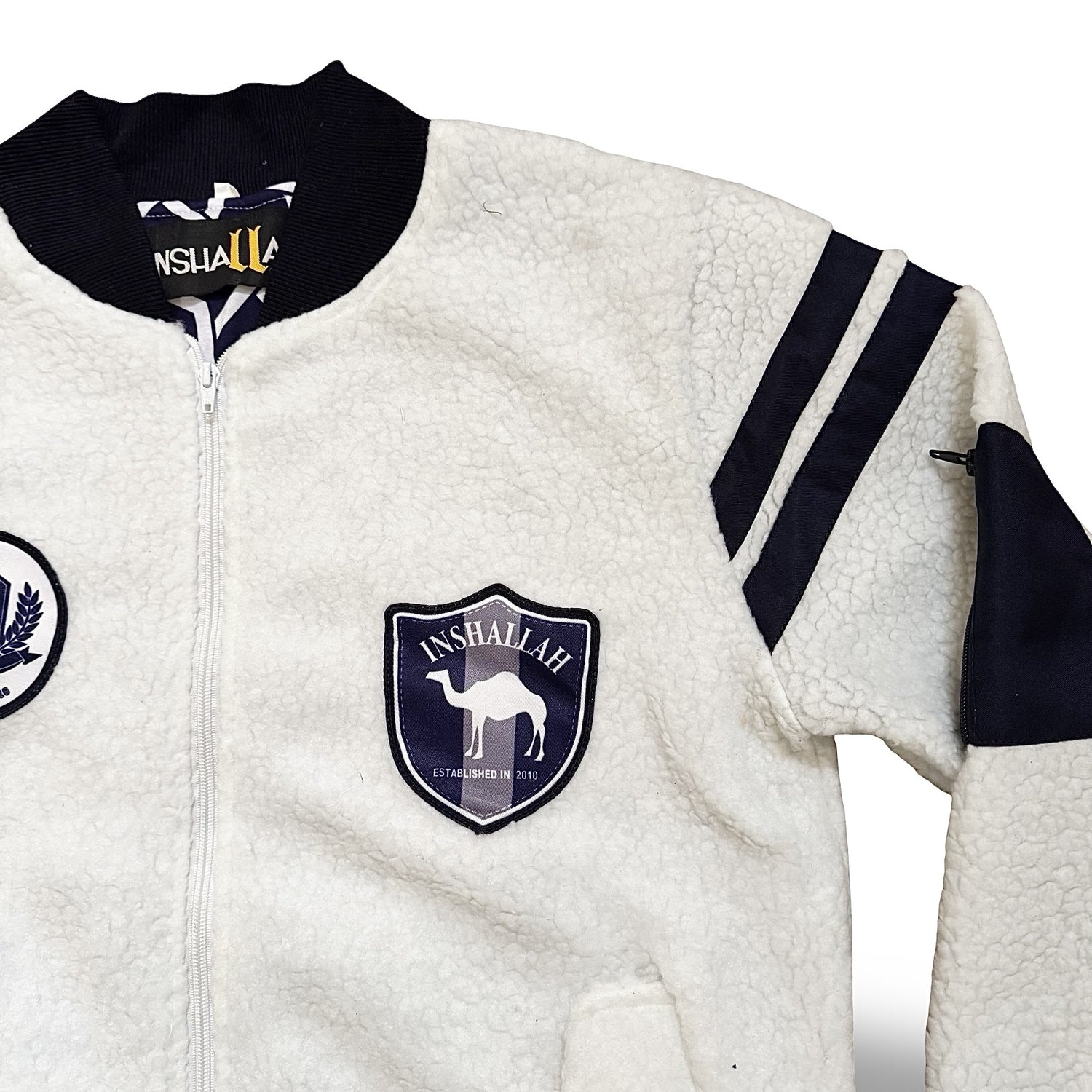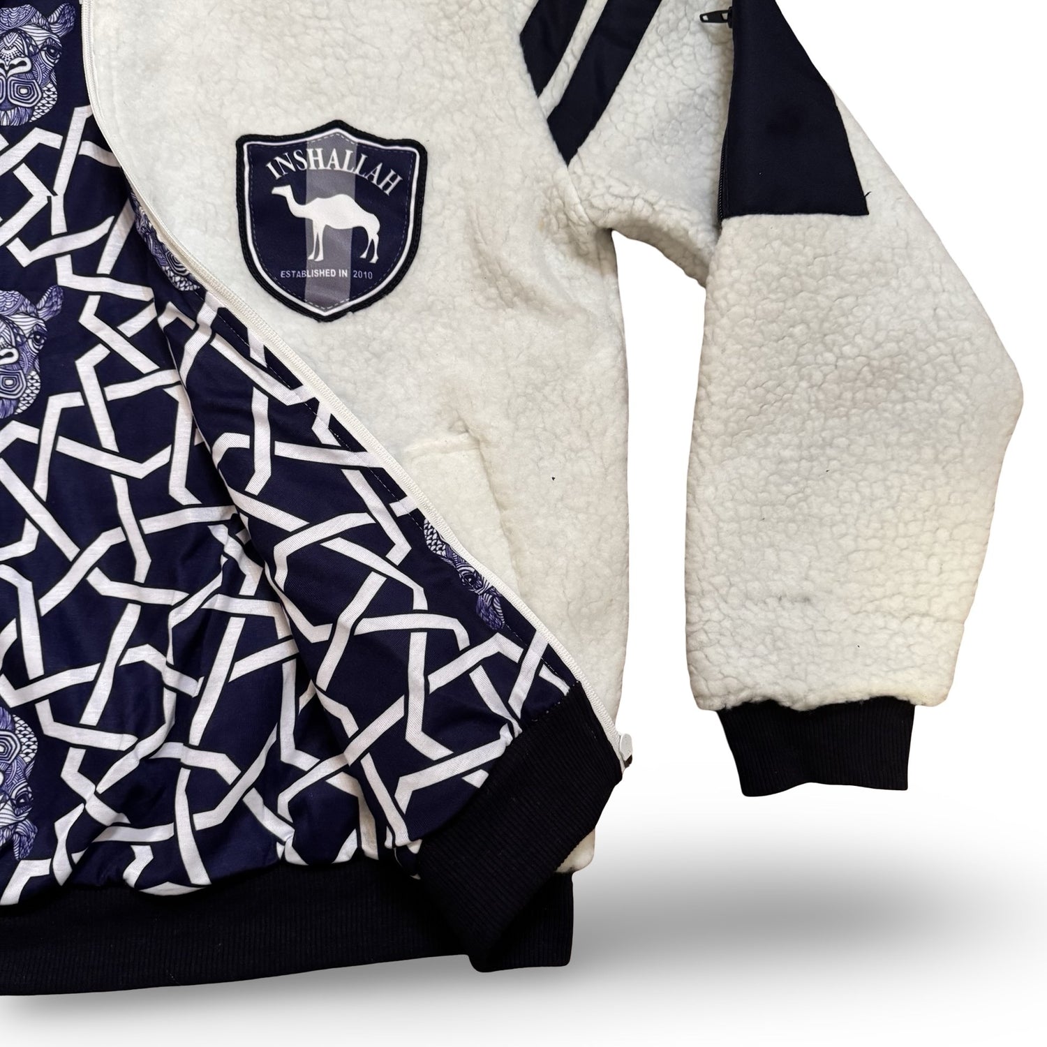 2 tone mid weight Shepra fleece hoodie/jacket with heavy embroidery and appliqué patchwork detailing..