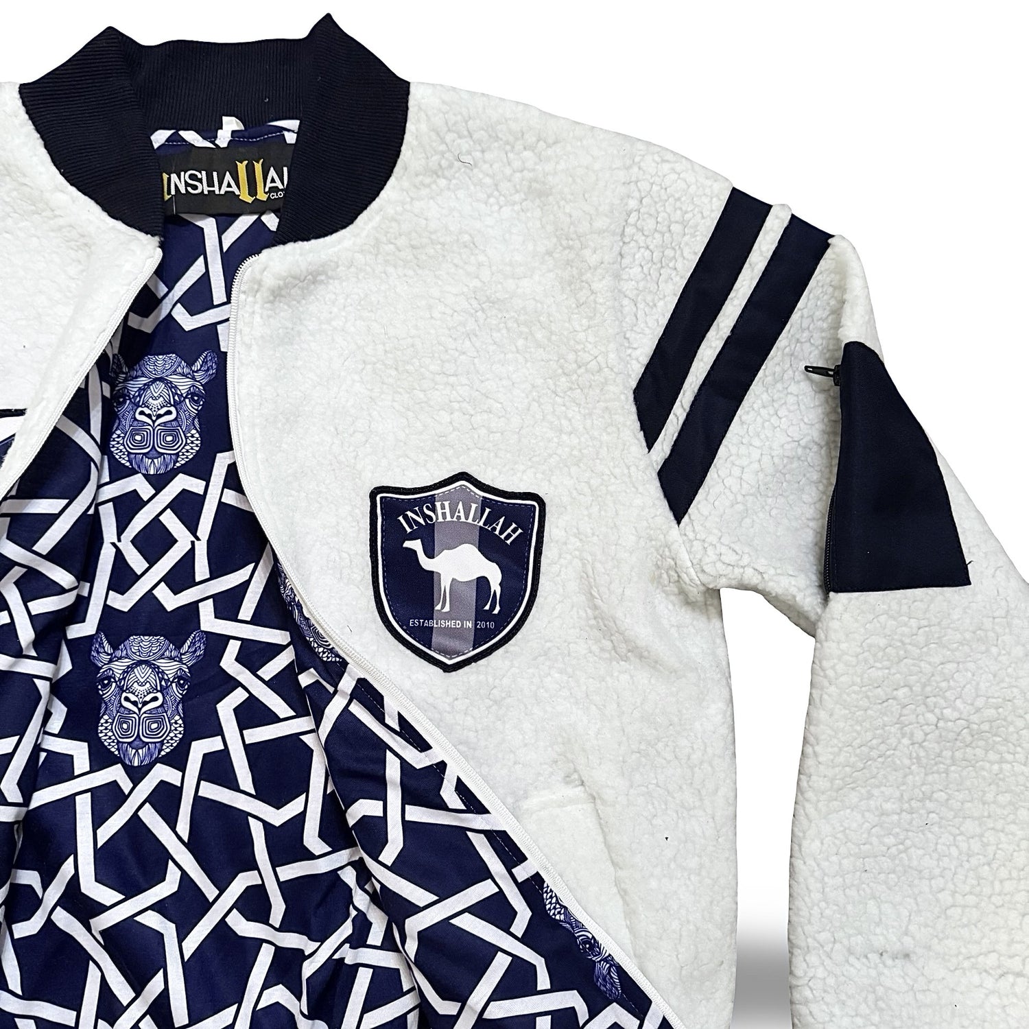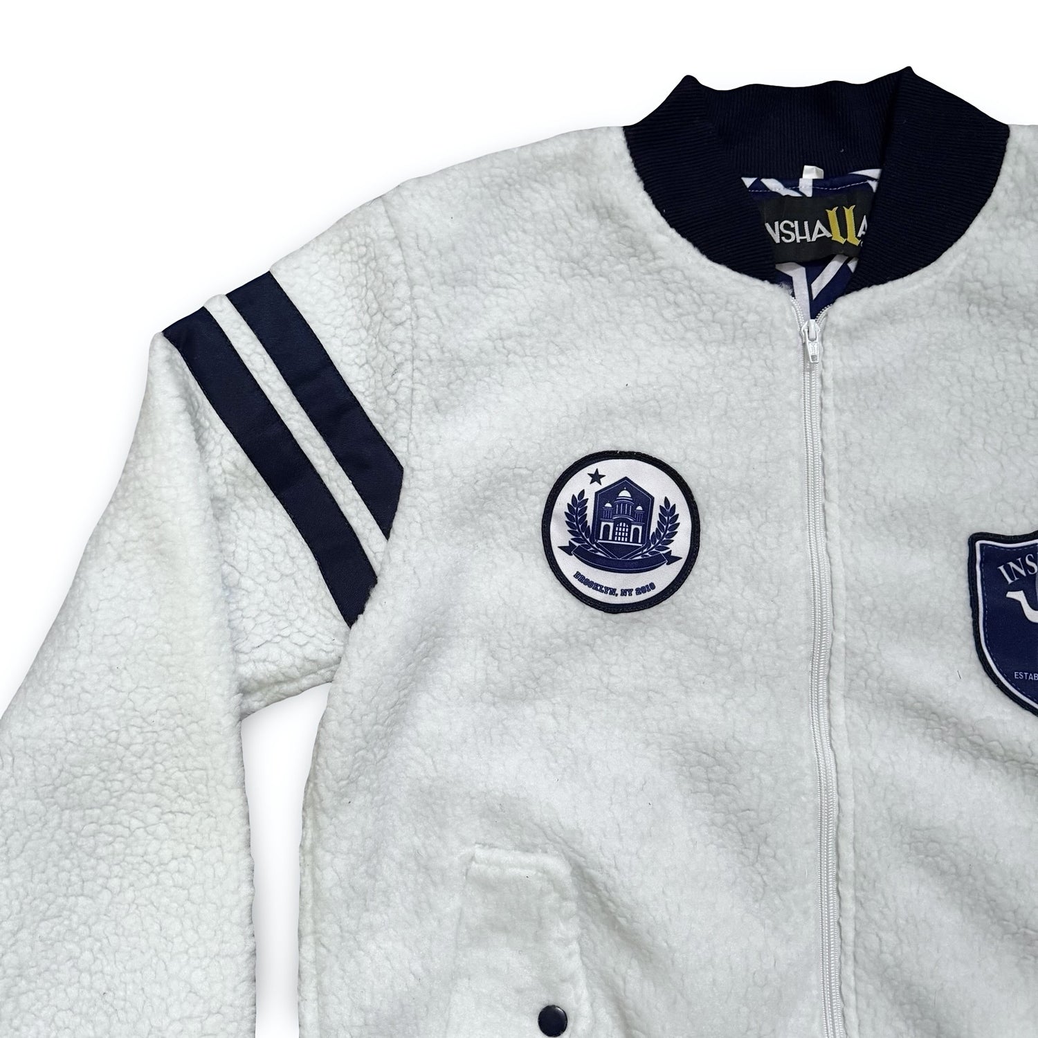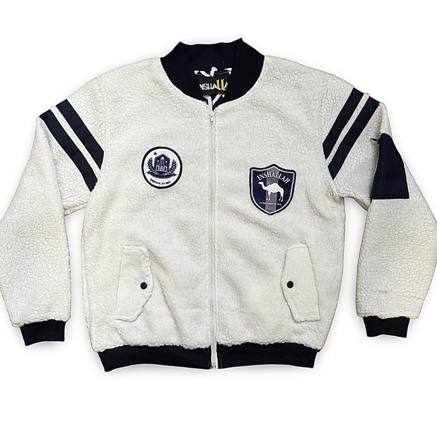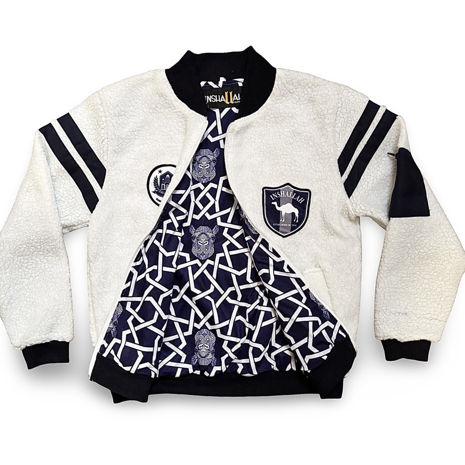 2 tone mid weight Shepra fleece hoodie/jacket with heavy embroidery and appliqué patchwork detailing..